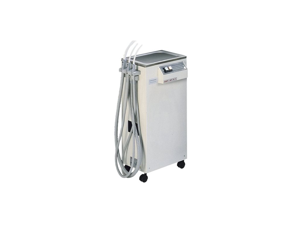 ASPI-JET 6 Γ je tichý a spolehlivý mobilní sací systém s ručně vyprazdňovaným kanystrém. Díky motoru Cattani Uni Jet 75 poskytuje stabilní výkon s minimální údržbou a lze jej použít jako hlavní jednotku nebo nouzovou zálohu v zubní ordinaci.