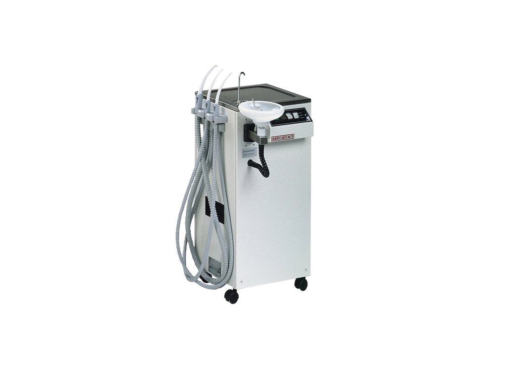 Aspi-Jet 9 mobilní odsávačka se třemi odsávacími hadicemi, s plivátkem a s napouštěním vody do poháru Mobilní sací jednotka s kompletním vodním systémem a automatickým vypouštěním