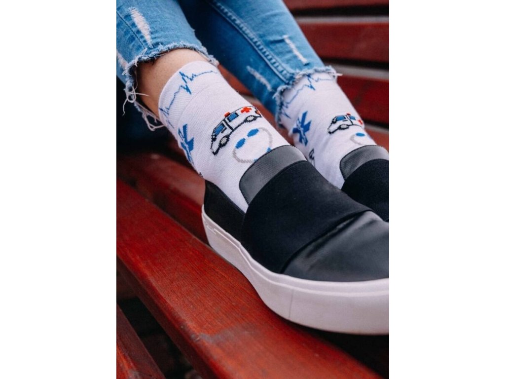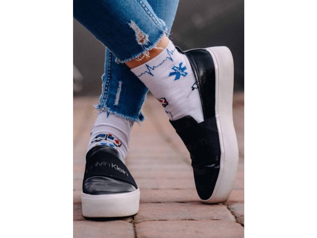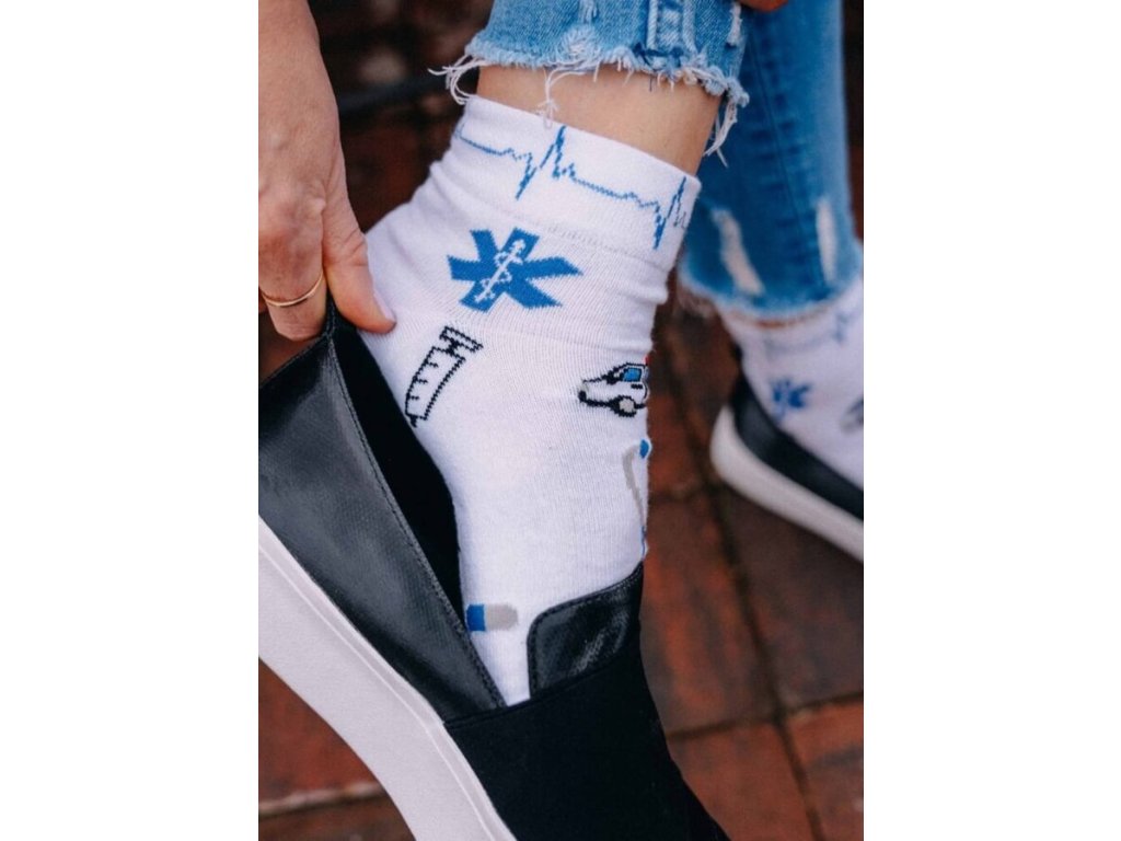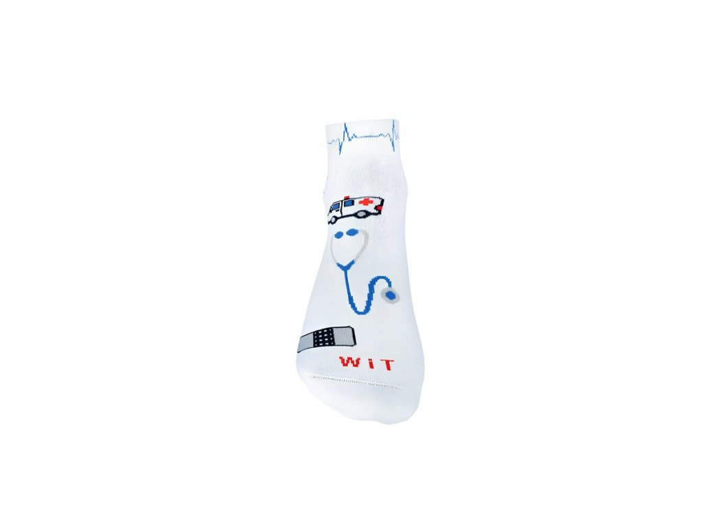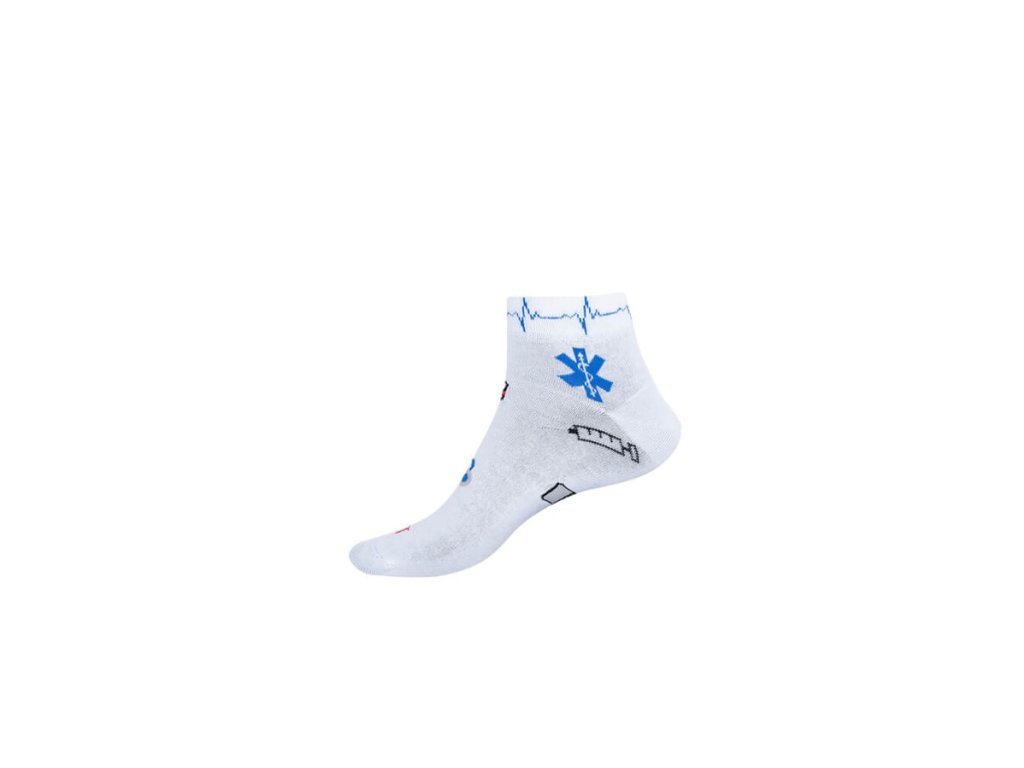 Dodání 4-5 pracovních dnů. Nízké bílé ponožky s originálním zdravotnickým vzorem. Nízké ponožky mají POHODLNÝ neškrtící LEM a kvalitní materiál. Vyrobeno v České republice rodinnou firmou. Ideální pro zdravotníky.