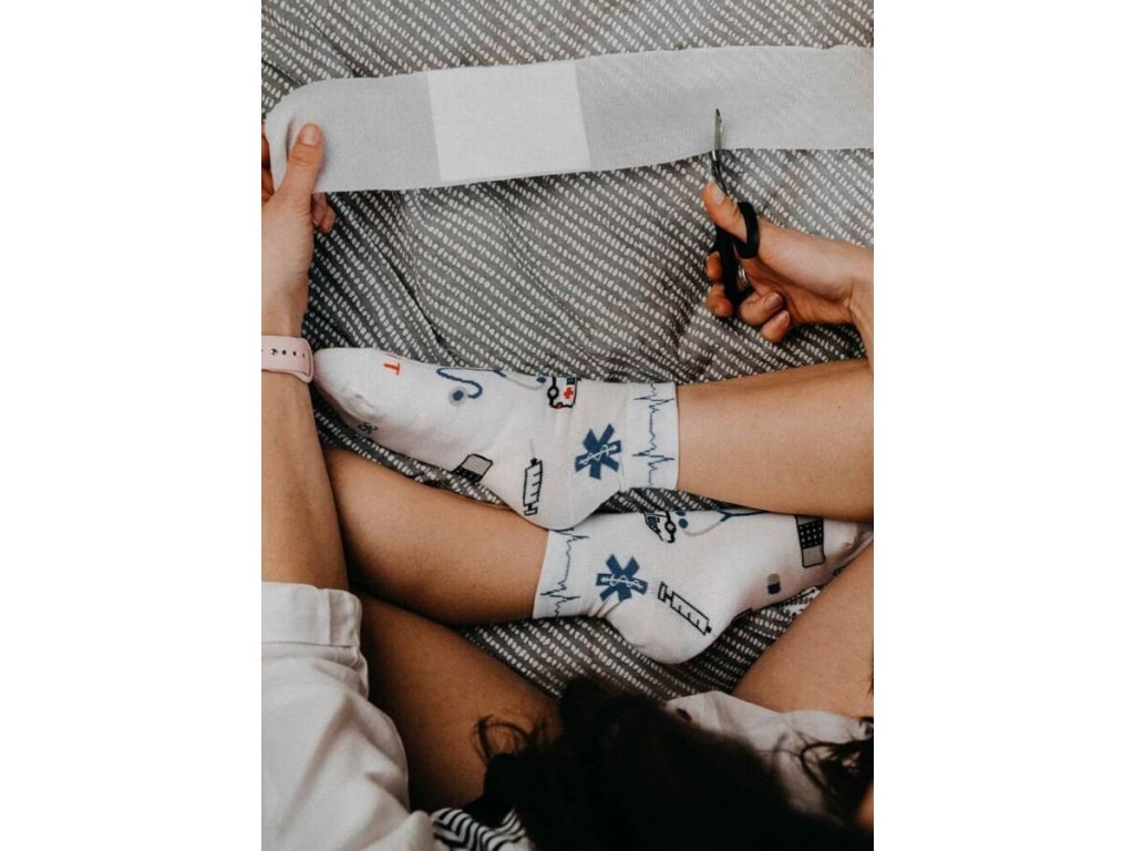 Tyto zdravotnické ponožky jsou dokonalou kombinací stylu, kvality a komfortu. Jejich originální vzor se zdravotnickou tématikou zaujme každého a poskytne vašemu pracovnímu outfitu jedinečný vzhled.