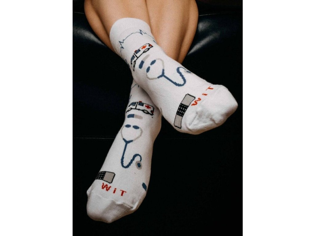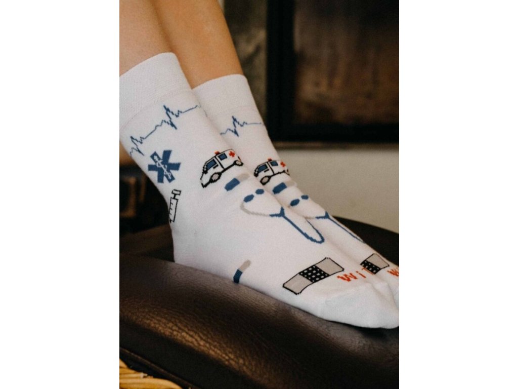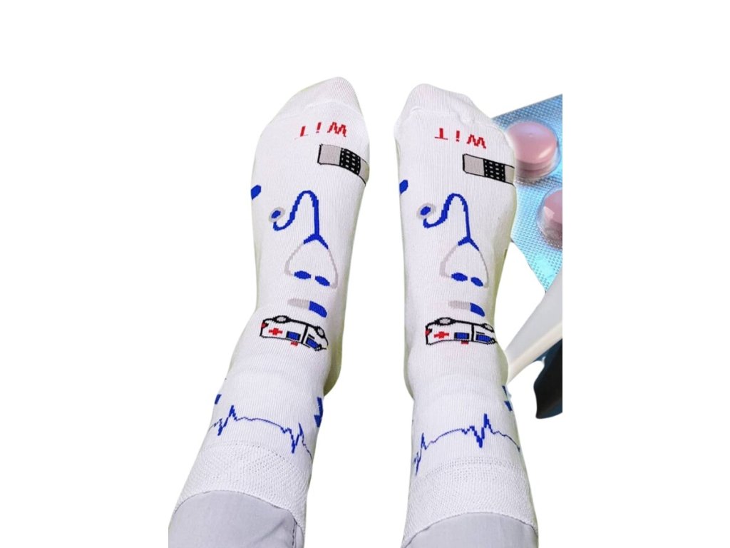 Dodání 4-5 pracovních dnů. Bílé ponožky s originálním zdravotnickým vzorem. Zdravotnické ponožky mají POHODLNÝ neškrtící LEM a kvalitní materiál. Vyrobeno v České republice rodinnou firmou. Ideální pro zdravotníky.