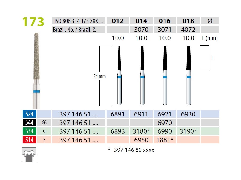 - Číselná řada „173" značí délkovou a konstrukční variantu, která ovlivňuje kompatibilitu s různými stomatologickými nástroji.