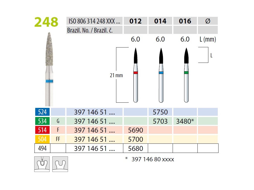 - Číslo „248" označuje variantu délky nebo pracovní části v daném tvaru.