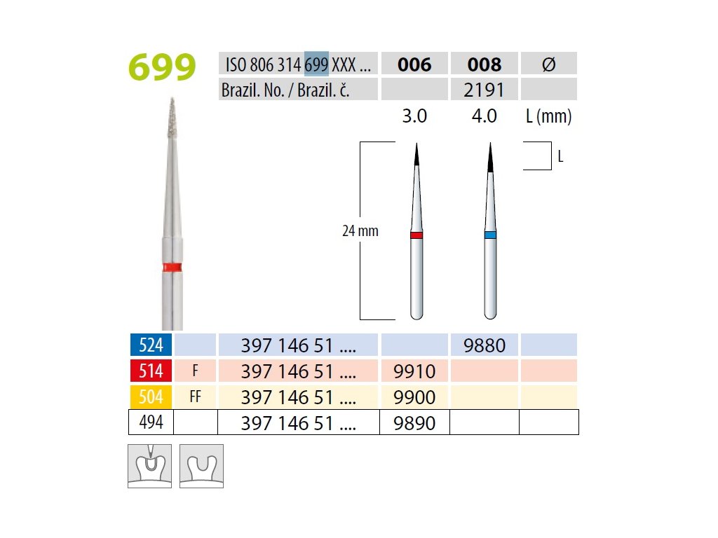 - Vhodný pro: velmi jemné, precizní preparace skloviny a dentinu, detailní tvarové úpravy a dokončovací práce ve stomatologii