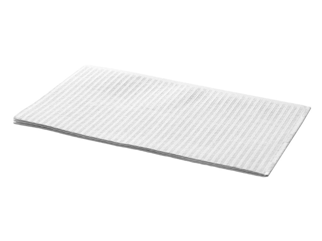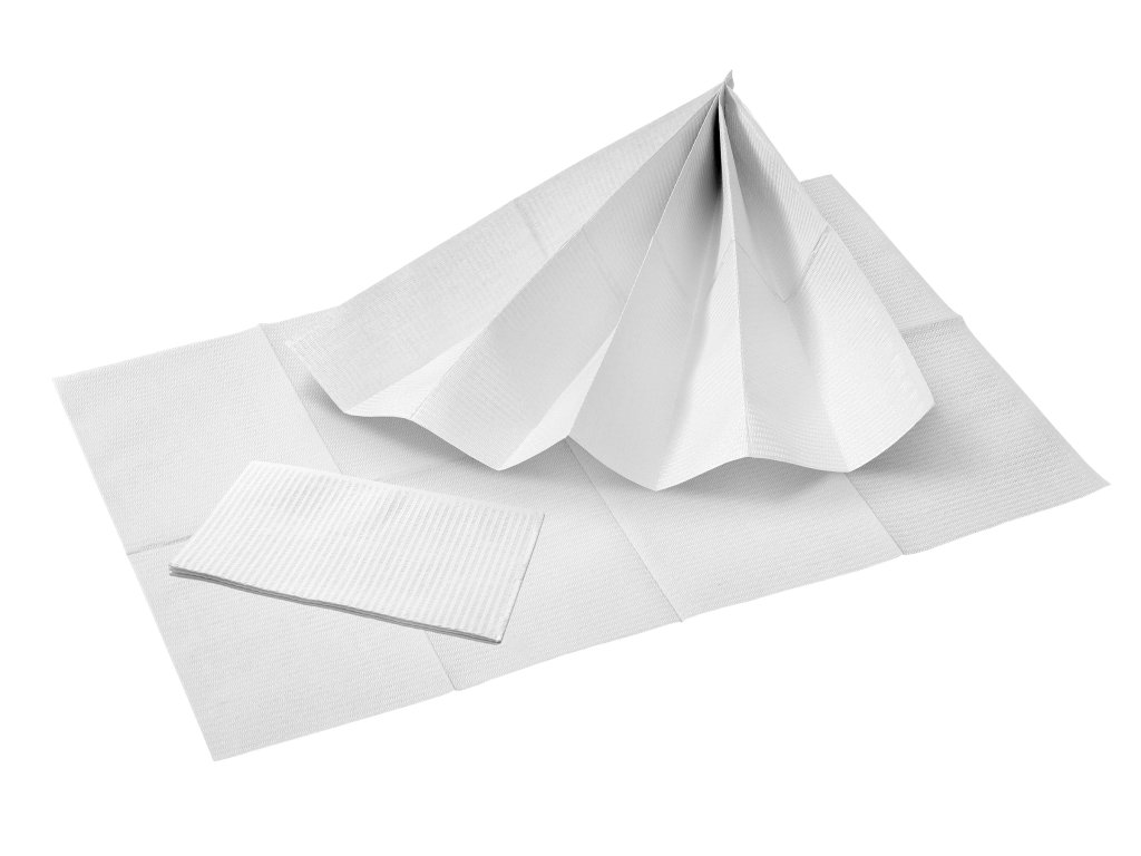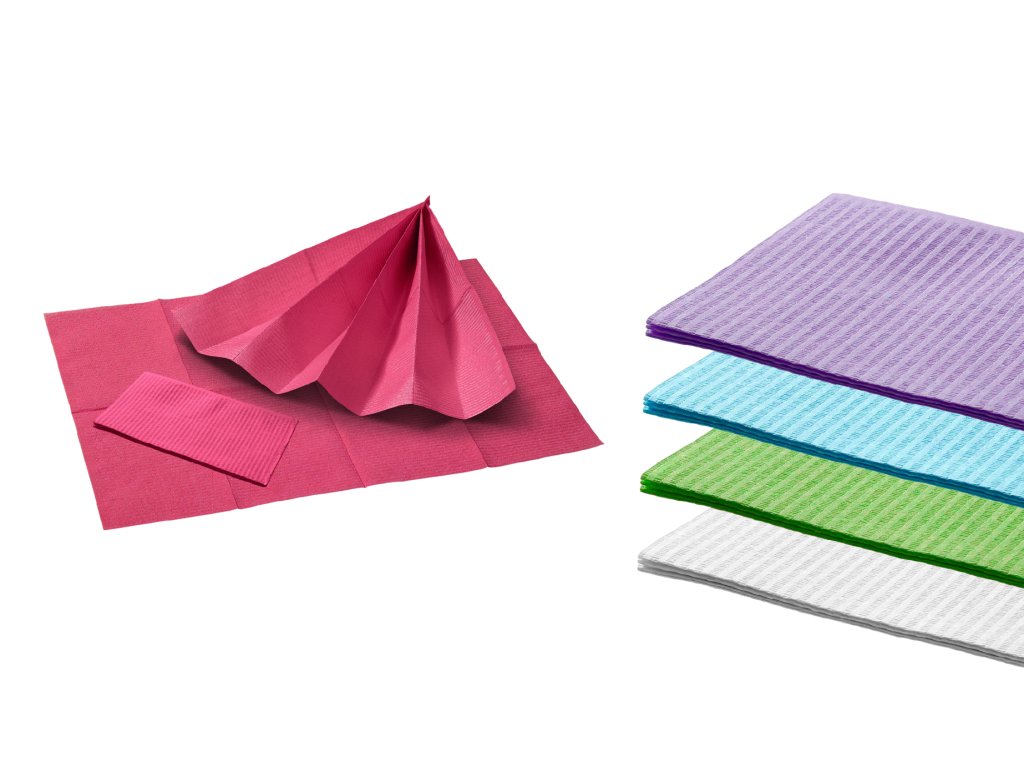 Vrchní strana ubrousků nabízí výjimečnou savost, zatímco spodní vrstva zajišťuje účinnou ochranu proti prosáknutí, což udržuje oblast kolem úst suchou a oděv pacienta čistý. Dvouvrstvá konstrukce kombinuje extra silnou tkaninu z čisté celulózy s PE-fólií, poskytující vysokou pevnost, odolnost a vynikající absorpční schopnosti. Ubrousky neobsahují latex, minimalizují riziko alergických reakcí a jsou vhodné i pro citlivé pacienty.