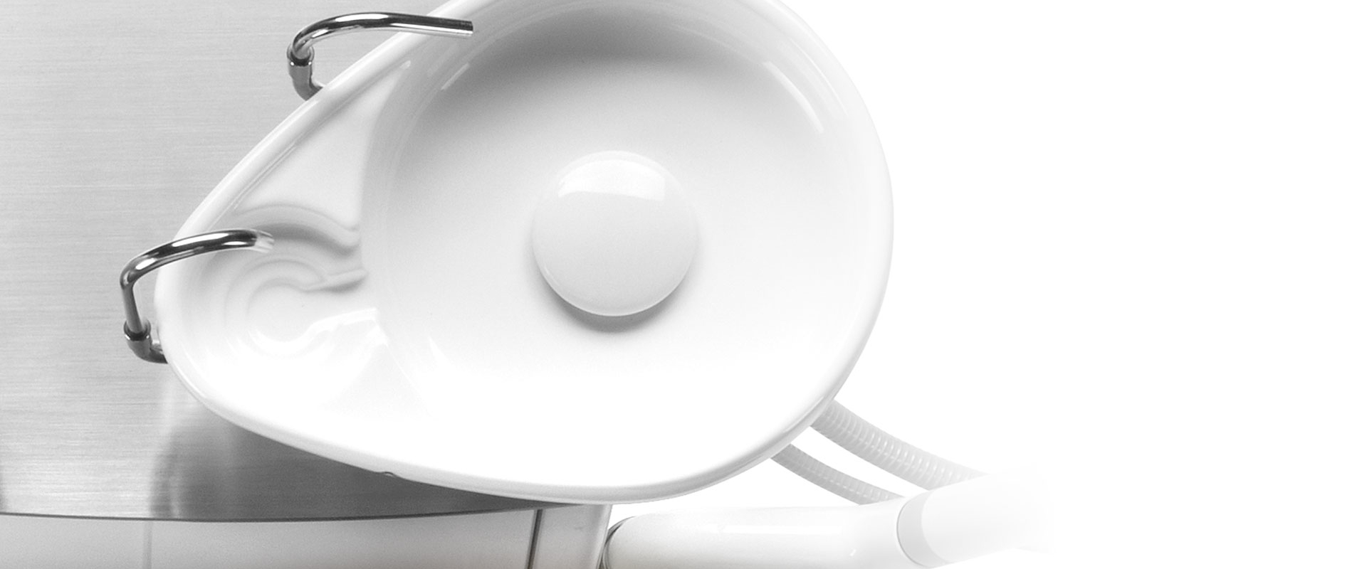 Součástí vybavení je také otočná keramická mísa, kterou lze nasměrovat směrem k pacientovi a snadno vyjmout pro hygienické čištění.