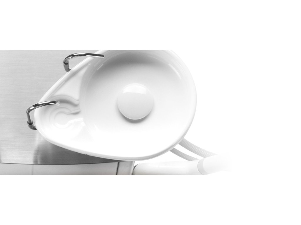 Součástí vybavení je také otočná keramická mísa, kterou lze nasměrovat směrem k pacientovi a snadno vyjmout pro hygienické čištění.