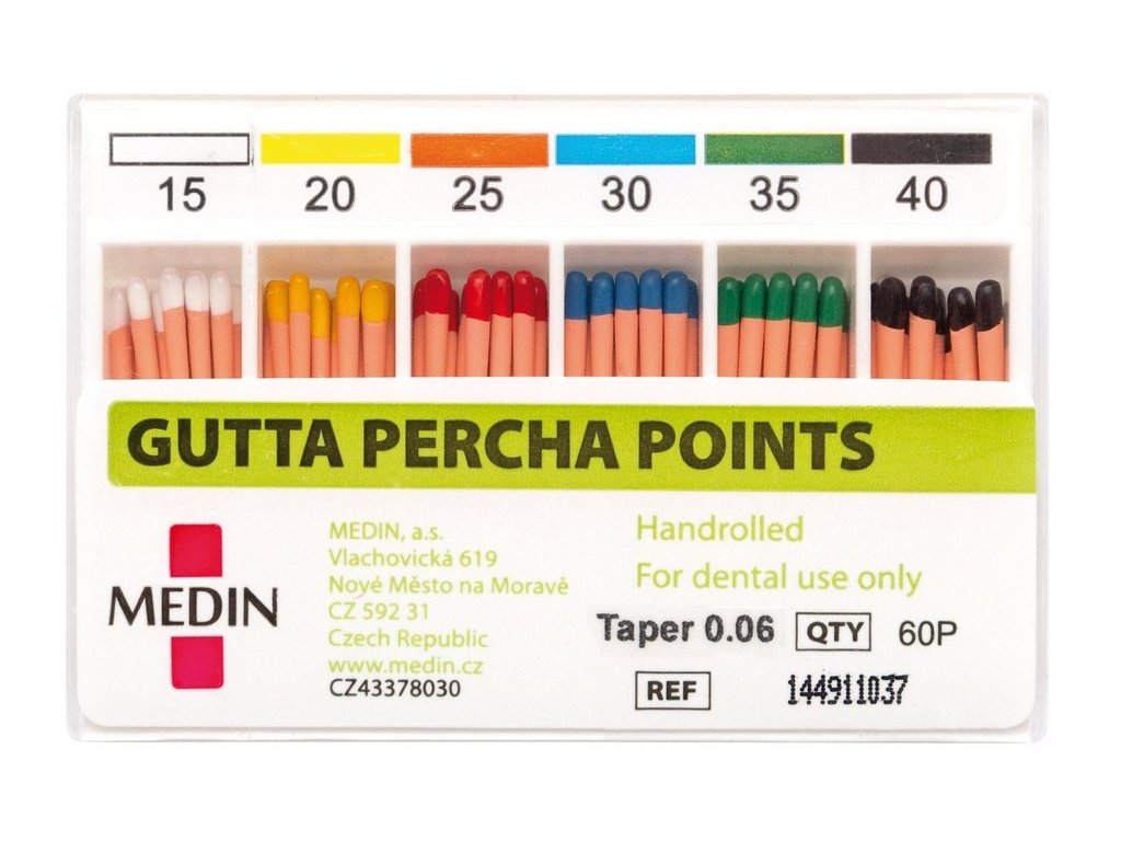 Čepy gutta percha kužel 0,06 set 015-040 – kompletní sada pro univerzální endodontickou léčbu