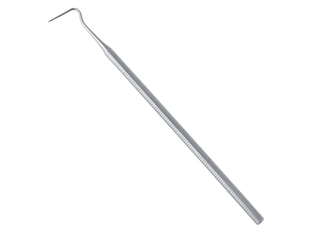 Tato klasická oboustranná sonda typu fig. 16 s rigidními hroty je navržena pro precizní taktilní kontrolu při zubním vyšetření. Vhodná k detekci kazivých lézí, okrajů výplní i plakem pokrytých oblastí.