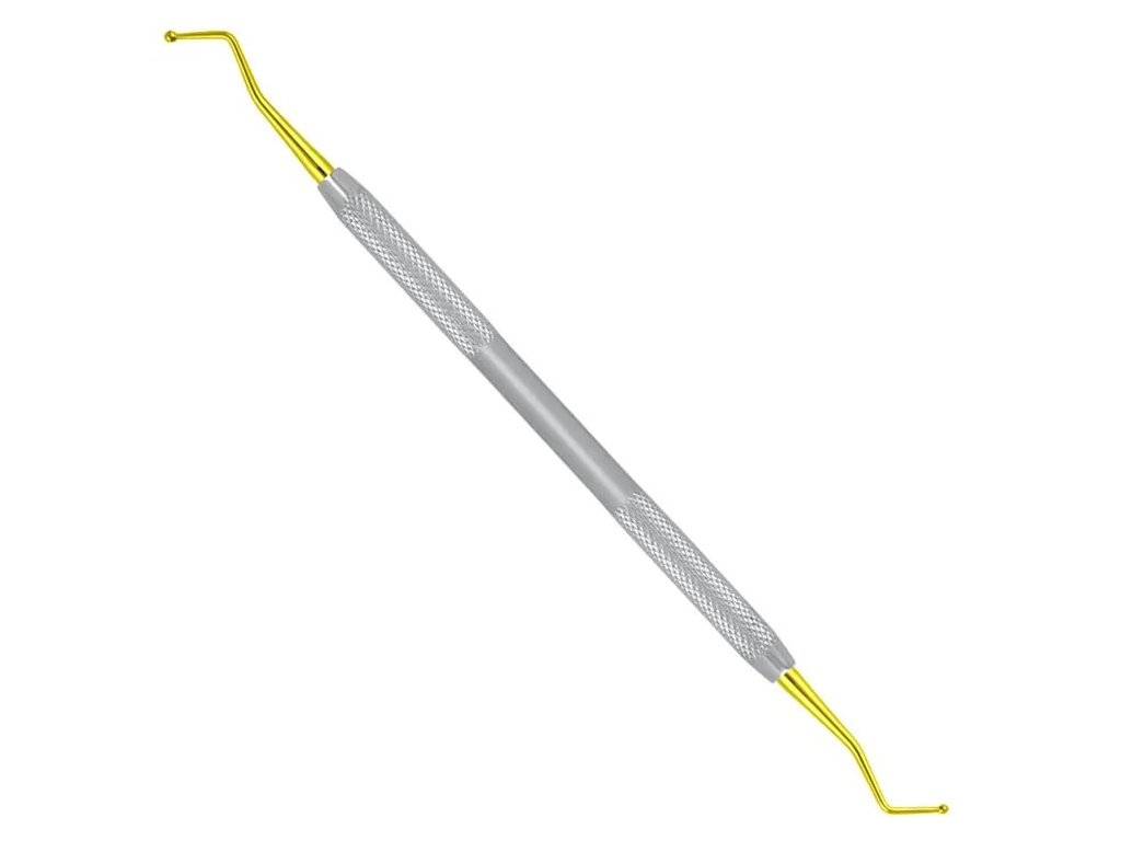 Tento klasický kulatý burnisher od Falconu ve fig. 2 je navržen pro finální úpravu výplní – vyhlazení a adaptaci materiálu do okrajů kavity. TIN (titan-nitridový) povlak zajišťuje vyšší tvrdost, odolnost proti korozi a snížené tření, což oceníte při každodenní praxi.