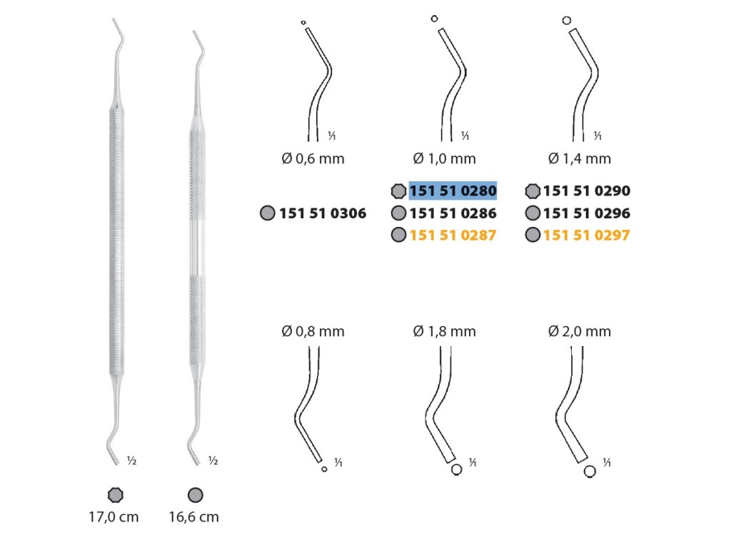 Celková délka nástroje 17,0 cm zajišťuje optimální dosah a pohodlnou manipulaci při práci v dutině ústní. Ergonomický design rukojeti umožňuje přesné vedení nástroje a snižuje únavu ruky při delších zákrocích.