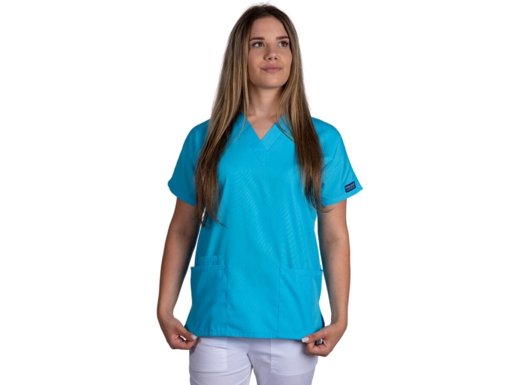 Dodání 4-5 pracovních dnů. Dámská halena má klasický rovný střih a odolný materiál, který lze prát v 70°. Oceníte především nenáročnou údržbu, ale i kvalitní zpracování a stálobarevnost. Dámská halena nabízí rozparky, přední kapsy, „V“ výstřih a krátké rukávy.