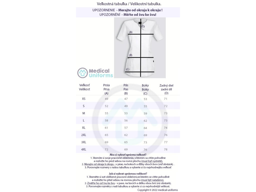 Použití: Tato halena je ideální pro širokou škálu profesí. Je vhodná pro lékařky, zubařky, dentální hygieničky, pediatrický personál a zdravotní sestry. Může být také použita pracovníky ve wellness a spa centrech, masérkami, kosmetičkami, kadeřnicemi nebo recepčními. Její univerzálnost ji činí i skvělé pro volnočasové nošení.