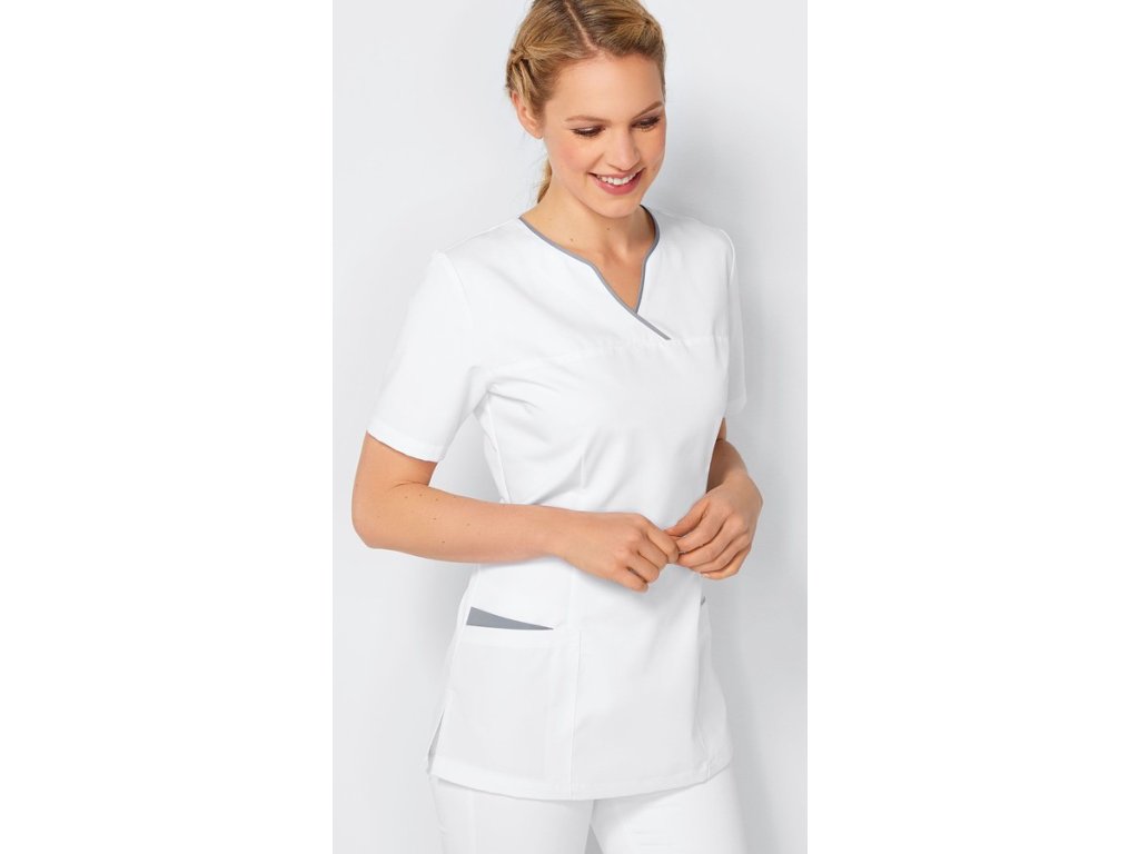 Dámská halena od značky 7days přináší nejen pohodlí, ale i elegantní design. Vyznačuje se zajímavým V výstřihem a barevným lemováním kolem kapsy a výstřihu, což jí dodává moderní vzhled. Tato halena se může pochlubit také vysokou odolností, protože je vhodná k praní až na 95 °C, což z ní činí ideální volbu pro profesionály, kteří potřebují spolehlivou a snadno udržovatelnou uniformu. K tomu je vhodná do sušičky, což ušetří čas při údržbě.
