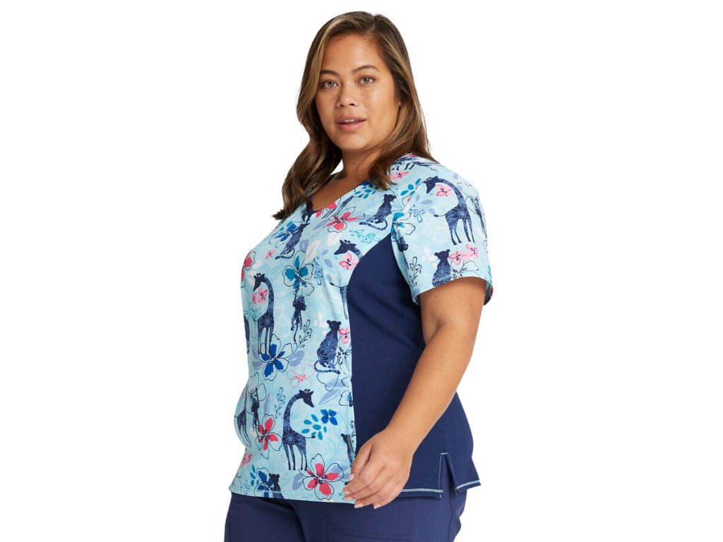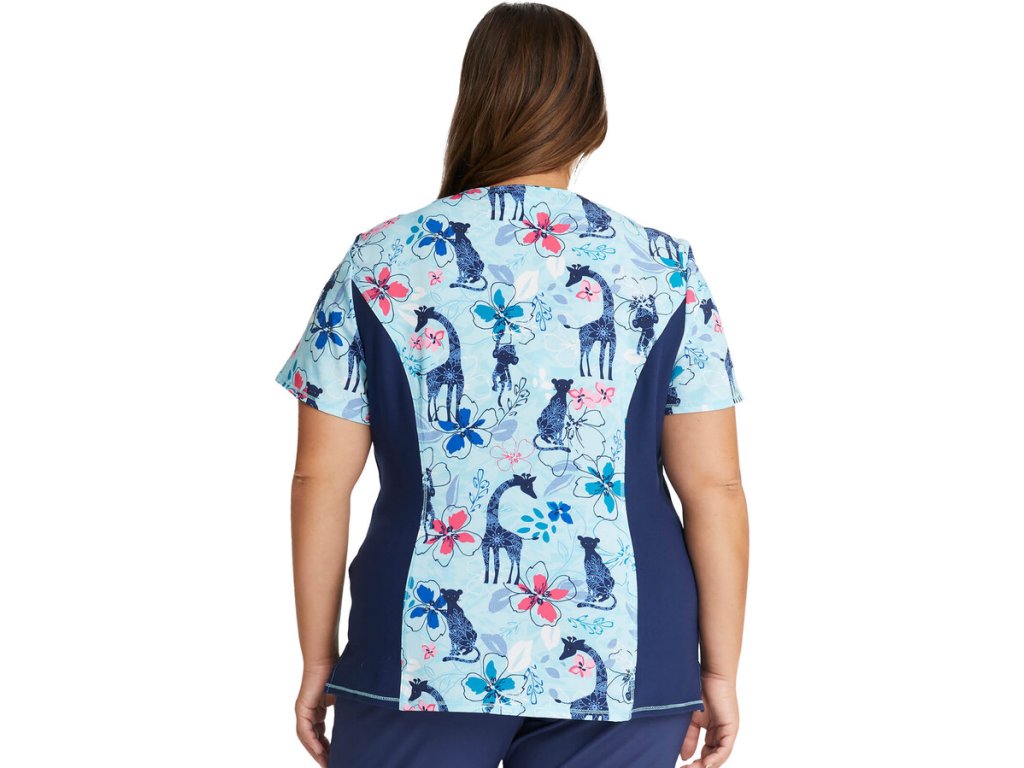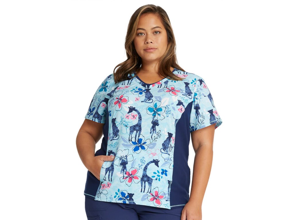 Dámská halena Cherokee iFlex ZOO je ideální volbou pro zdravotníky, kteří hledají kombinaci pohodlí, moderního střihu a veselého designu. Tento model je skvělý pro všechny typy postav díky vypasovanému střihu, který dodává lichotivý vzhled. Halena nabízí přední kapsy, boční elastické pásy a rozparky, které umožňují větší volnost pohybu během náročných pracovních dnů.