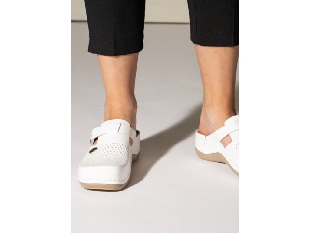 Dodání 4-5 pracovních dnů. Dámská kožená ORTOPEDICKÁ OBUV s PROTISMYKOVOU PODRÁŽKOU a certifikáty. Tyto zdravotní pantofle s uzavřenou špičkou jsou vhodné pro CELODENNÍ NOŠENÍ. Ideální pro zdravotníky, učitelky, ale i domácí nošení.