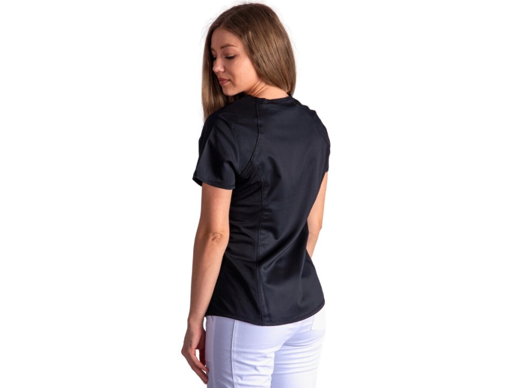 Pohodlí a praktičnost: Halena je navržena s ohledem na potřeby zdravotnického personálu, který ocení její komfort i funkčnost. Díky elastickým vsadkám se halena krásně přizpůsobí postavě, aniž by omezovala v pohybu. Navíc materiál je odolný proti zmačkání, snadno se pere a rychle schne.