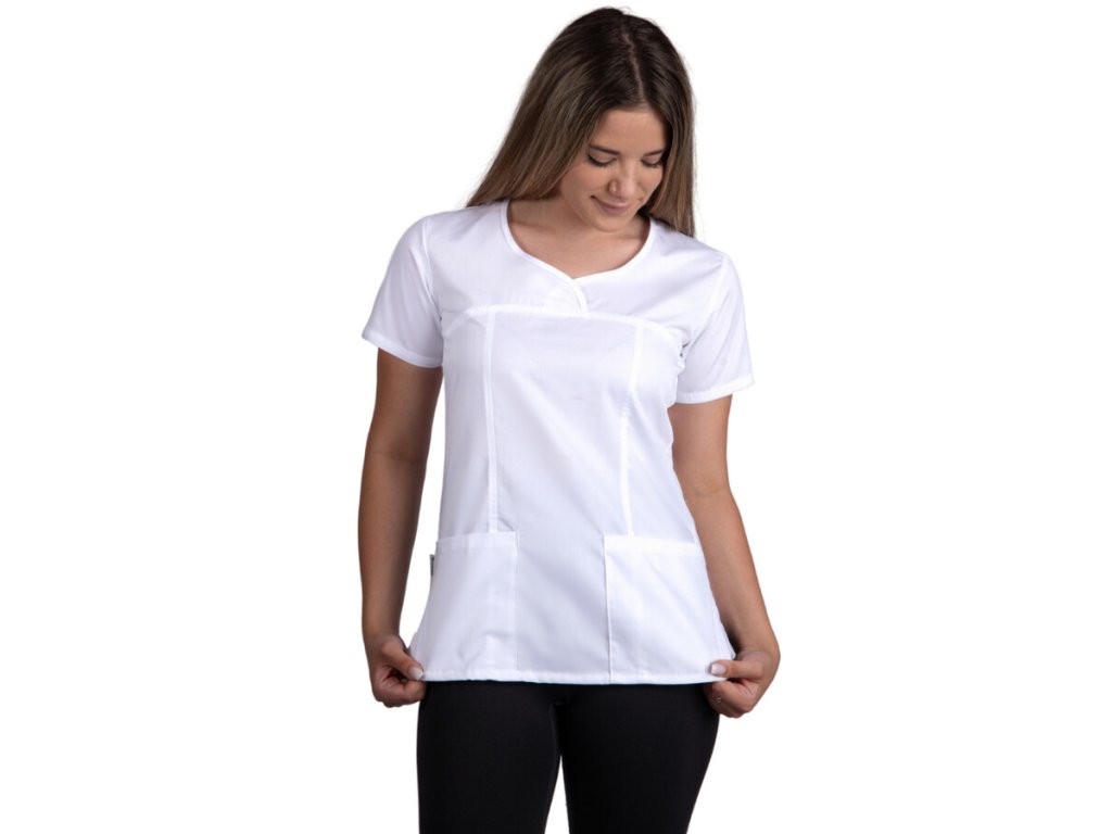 Tato dámská zdravotnická halena se vyznačuje elegantním a efektním výstřihem, díky kterému vypadá moderně a profesionálně. Je cenově dostupná a ideální pro všechny zdravotníky. Dostupná je v módních pastelových barvách, jako je pastelová modrá, mint a klasická bílá, což z ní činí univerzální volbu pro všechna zdravotnická oddělení.