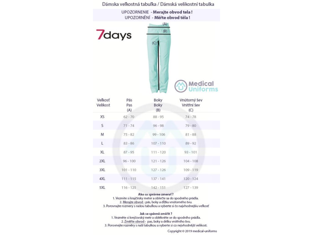 Tyto pohodlné zdravotnické kalhoty značky 7days s elastickým pasem se stanou oblíbenou součástí vašeho pracovního oblečení. Vyrobeny jsou z kvalitní bavlny s 50% příměsí polyesteru, což zaručuje pohodlí a odolnost materiálu. Kalhoty mají dvě praktické boční kapsy a oblíbený úzký střih, který se hodí pro každodenní nošení.