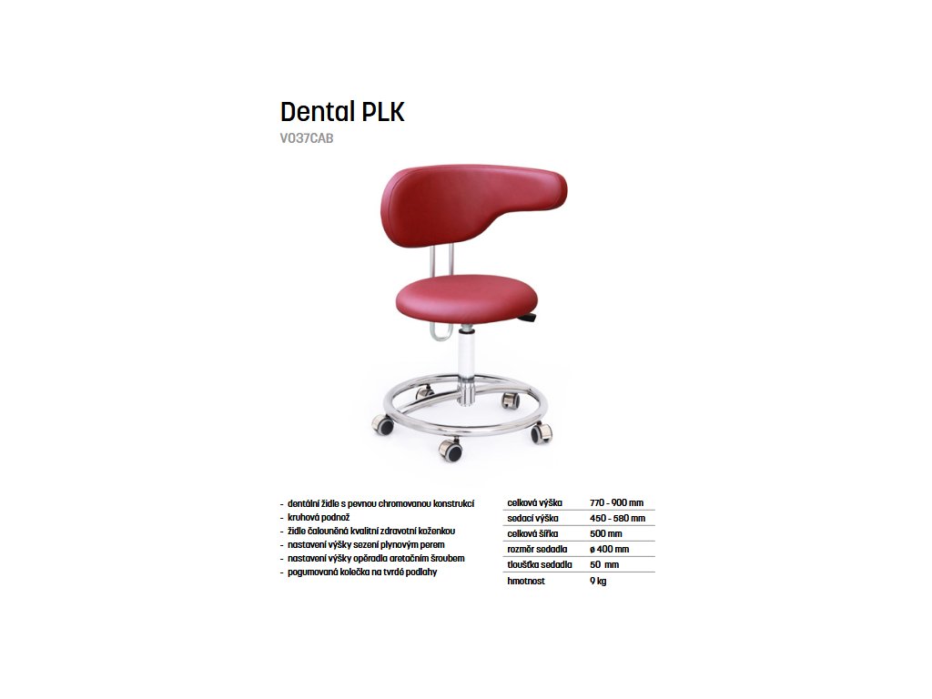Model DENTAL PLK je vybaven pevnou chromovanou konstrukcí a kruhovou podnoží, která zajišťuje stabilitu a pevnost při každodenním používání v ordinacích. Židle je čalouněná kvalitní zdravotní koženkou, která nabízí komfortní a hygienický povrch.