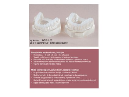 Model Real Series Ideal Occlusion představuje špičkovou pomůcku pro demonstraci a výuku v oblasti stomatologie. Díky elastické bázi a vyjímatelným zubům s kořeny umožňuje provádět realistické ukázky různých metod ošetření, aplikací implantátů i...