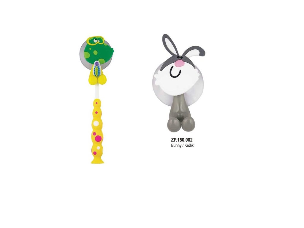 Je praktický a hravý držák na dětský zubní kartáček, který zaručí, že kartáček zůstane hygienicky uložený a snadno přístupný. Veselý design králíka potěší děti a podporuje pravidelnou dentální hygienu. Ideální do koupelen doma, ale i do školek či ordinací.