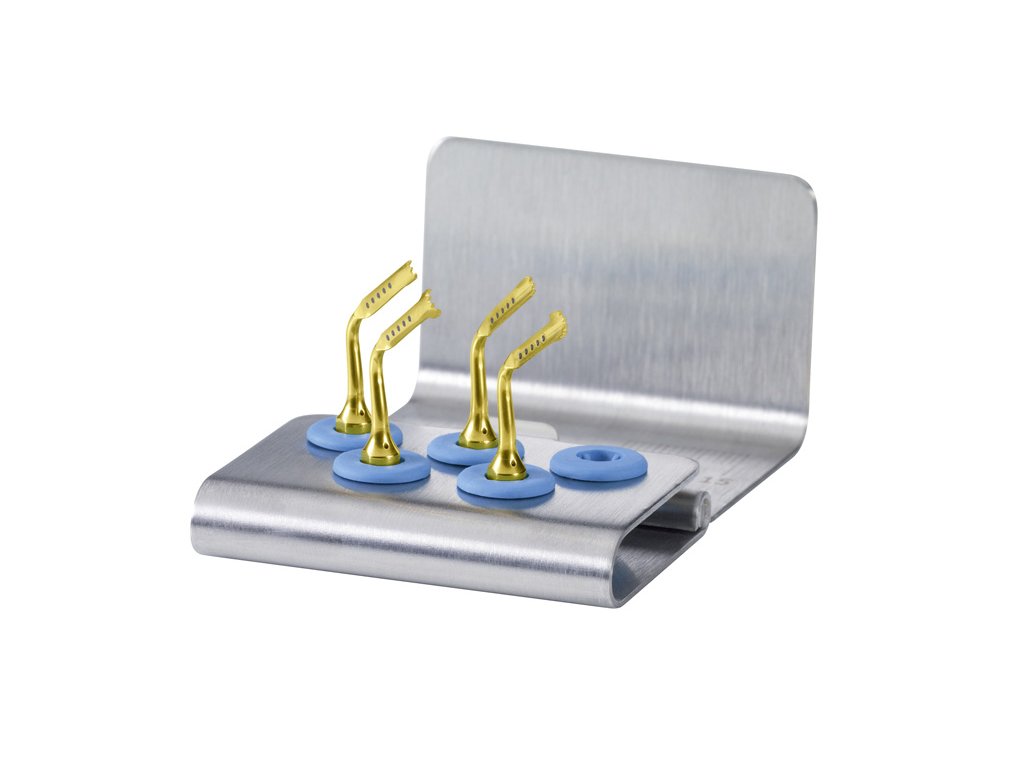 Sada obsahuje čtyři koncovky: EXP3-L, EXP3-R, EXP4-L a EXP4-R, určené pro práci na levé i pravé straně čelisti. Usnadňují uvolnění implantátu bez použití mechanické síly. Všechny koncovky jsou přehledně uloženy v nerezovém zásobníku, který umožňuje snadnou manipulaci a opakovanou sterilizaci.