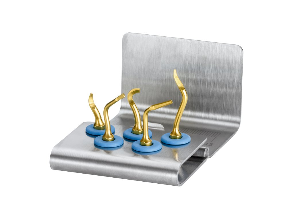 Specializovaná sada koncovek určená pro atraumatickou extrakci třetích molárů pomocí technologie PIEZOSURGERY®. Ideální pro chirurgické extrakce v omezených prostorových podmínkách, kde je klíčová precizní manipulace a minimalizace poškození okolních struktur.