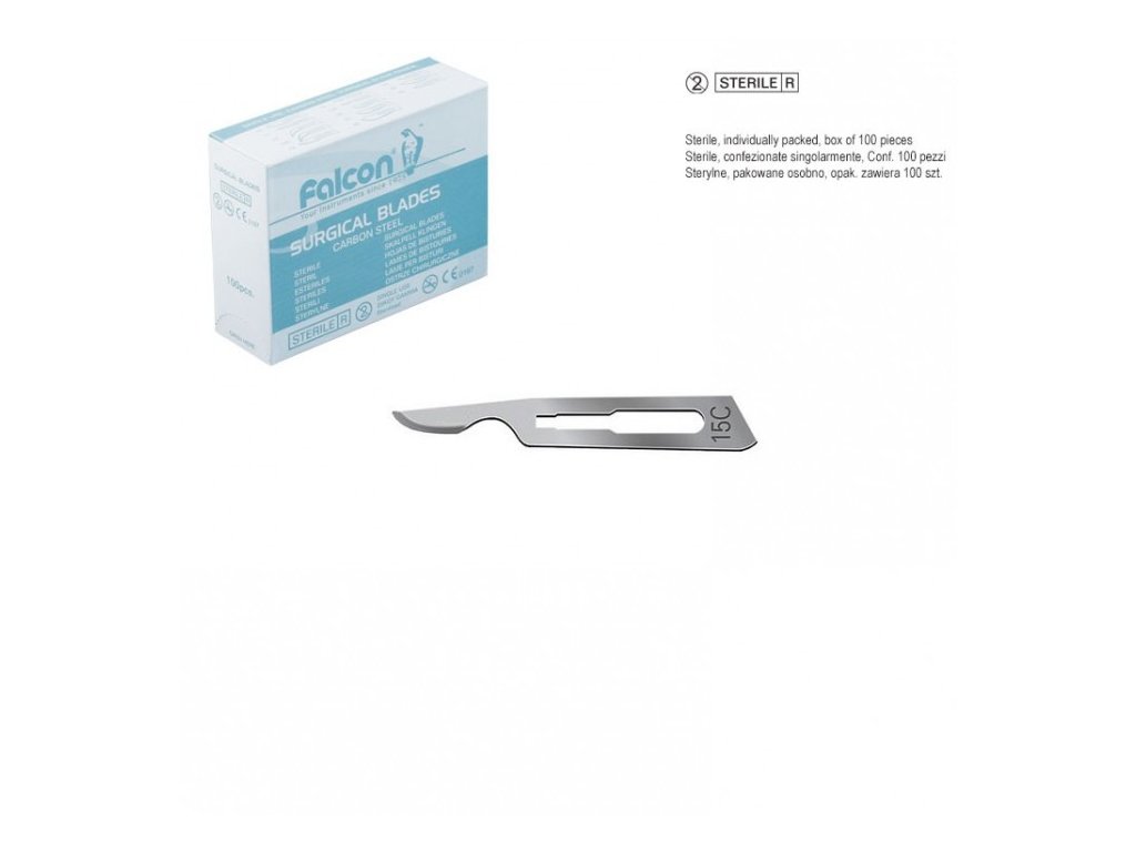 Skalpelové čepele Falcon fig. 15C jsou navrženy pro profesionální použití ve stomatologii, chirurgii a dermatologii, kde je vyžadována maximální přesnost a kontrola. Jejich typický tvar s úzkým a mírně zahnutým ostřím umožňuje jemnou manipulaci i v těžko přístupných místech.