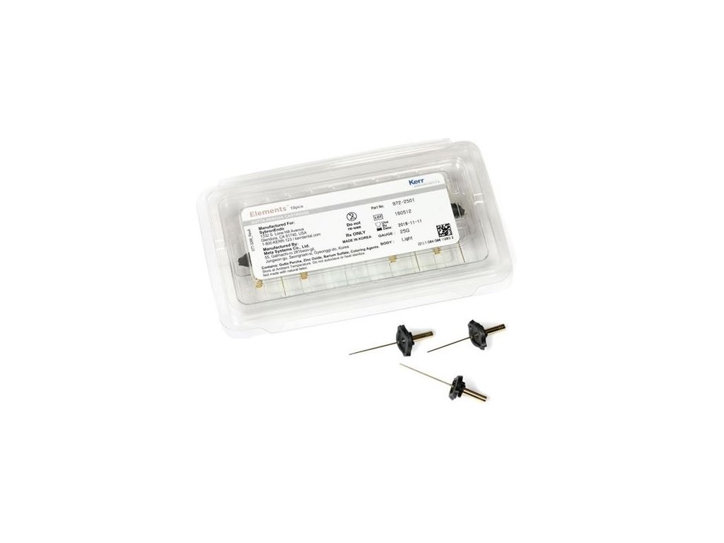 Gutaperčové zásobníky do obturačních jednotek Elements a Elements Free 3D pro plnění kořenových kanálků. Existují 3 velikosti aplikačních jehel 25 GA, 23 GA, 20 GA a 3 různé hustoty gutaperči (light, medium, heavy).