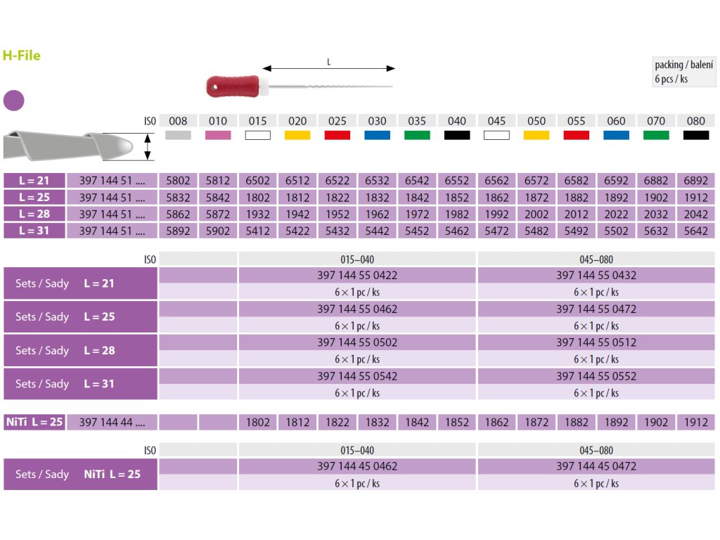 Sada je určená pro ruční endodontické techniky (step-back, crown-down) jako kompletní systém postupného rozšiřování kořenových kanálků.