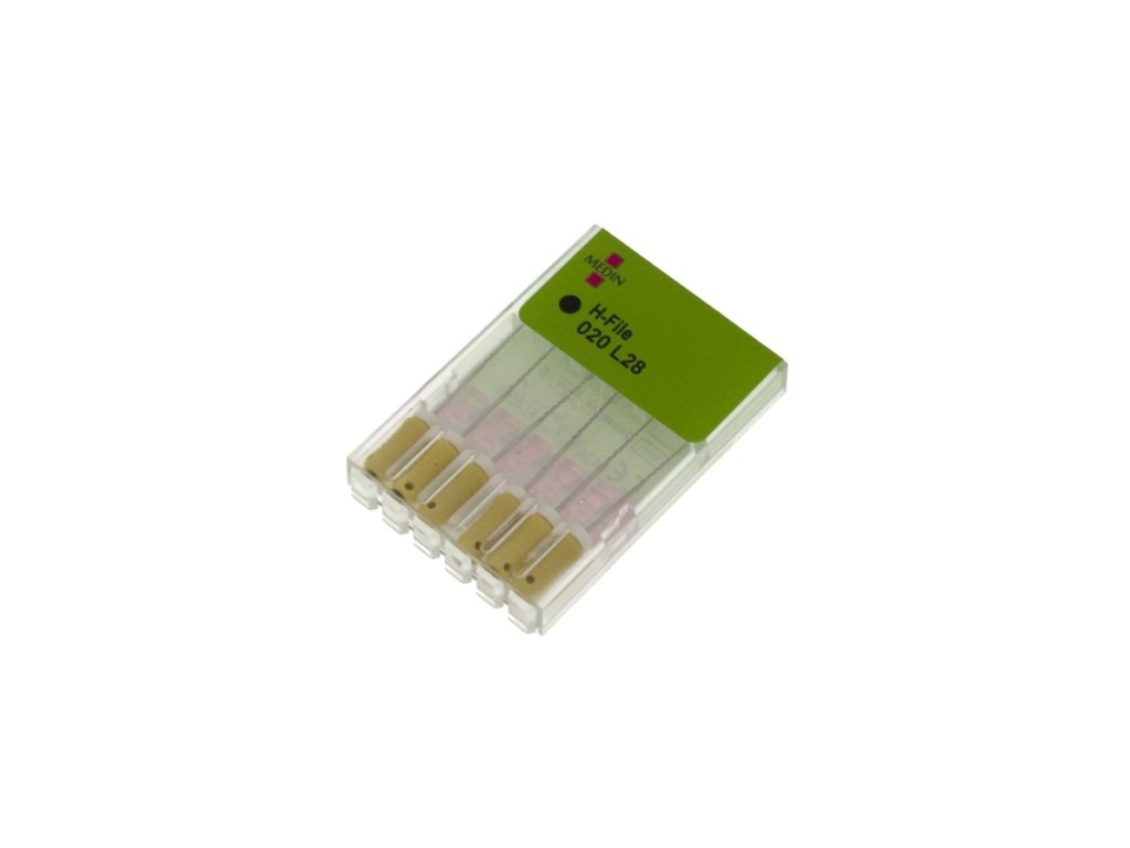 Medin H-File 020, L28 je ruční endodontický pilník typu Hedström, určený k mechanickému opracování a rozšíření úzkých až středně širokých kořenových kanálků a k odstranění infikovaného dentinu a zbytků tkání. S ISO velikostí 020 (žlutá rukojeť) a pracovní délkou 28 mm je vhodný pro ošetření delších kořenů, zejména premolárů a molárů.