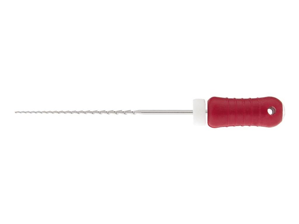 H-File 055 L25 Endodontický Hedström pilník Medin H-File 055, 25 mm – červená ISO rukojeť pro ruční opracování středně dlouhých kanálků