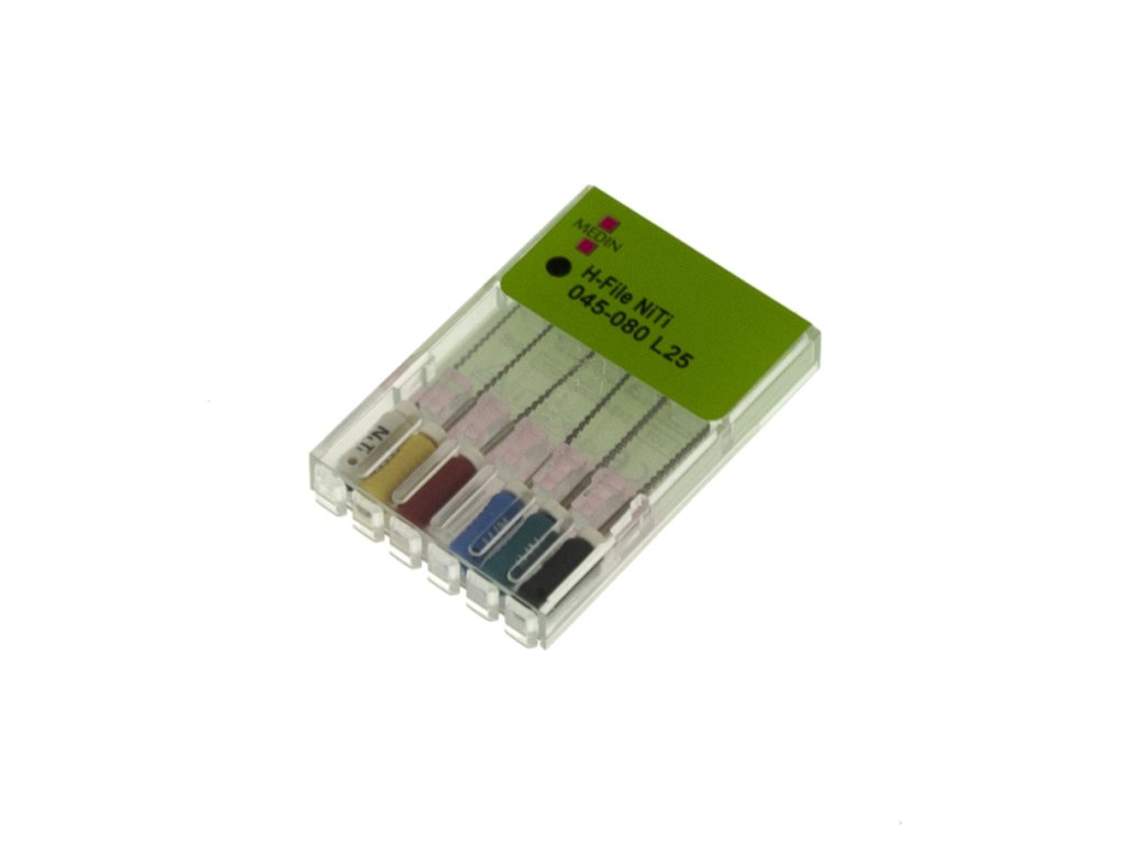 Medin H-File NiTi 045-080, L25 – sada nikl-titanových endodontických H-pilníků pro úzké kanálky