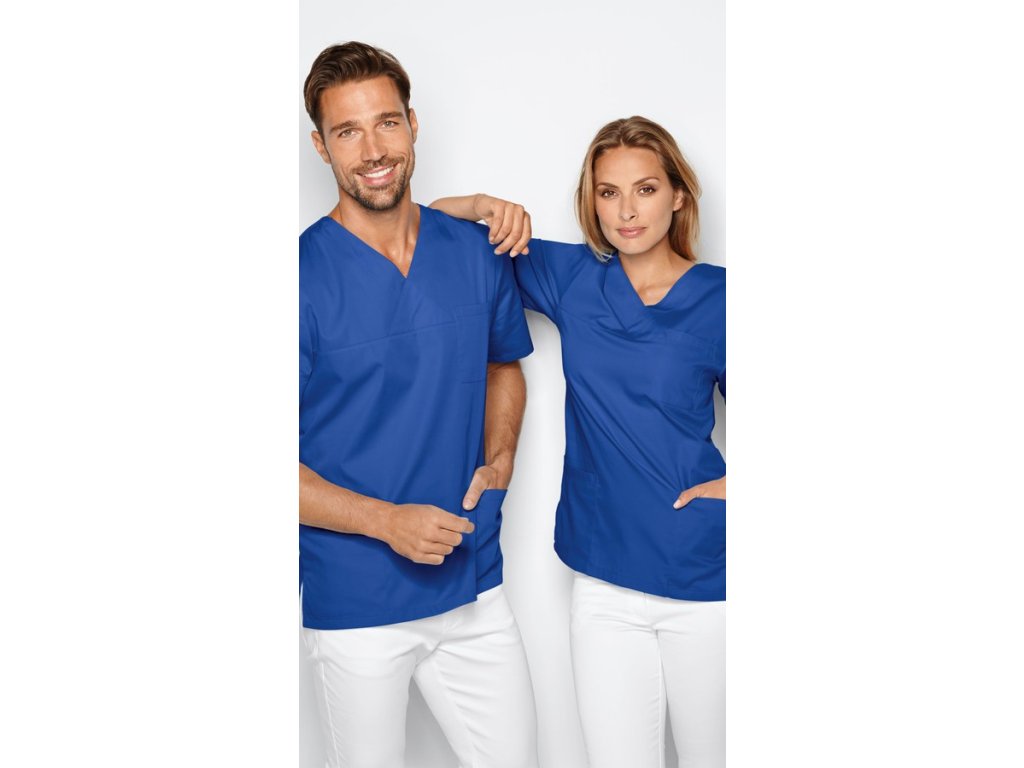 - Univerzální design: Klasický unisex střih, který je vhodný pro všechny pracovní týmy, lékaře, sestry a další zdravotnický personál.