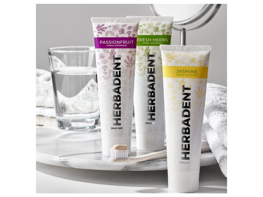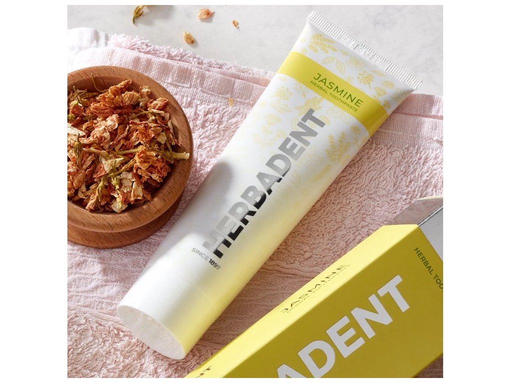 HERBADENT JASMINE je unikátní bylinná zubní pasta, která vychází z tradiční receptury ze 7 léčivých bylin.