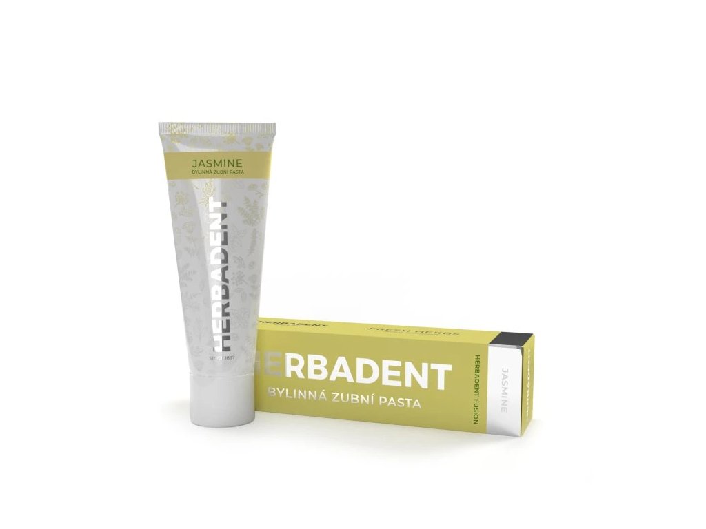 HERBADENT JASMINE Bylinná zubní pasta 75 g s krabičkou expirace 28.2.2026 Bylinná zubní pasta s jasmínem pro jemnou, ale účinnou péči o dásně