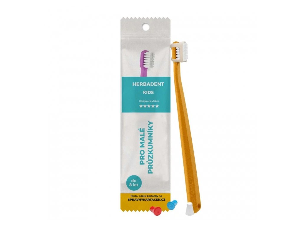 HERBADENT KIDS Zubní kartáček s ultrajemnými vlákny - žlutý v ekologickém balení Dětský zubní kartáček s ultrajemnými vlákny – žlutý