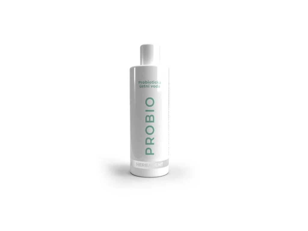 HERBADENT PROBIO probiotická ústní voda 240 ml – přírodní ústní voda s probiotickým komplexem pro podporu zdravého ústního mikrobiomu, prevenci zánětů dásní a zubního kazu. Obsahuje vitamíny skupiny B a bylinný extrakt HERBADENT pro regeneraci dásní.
