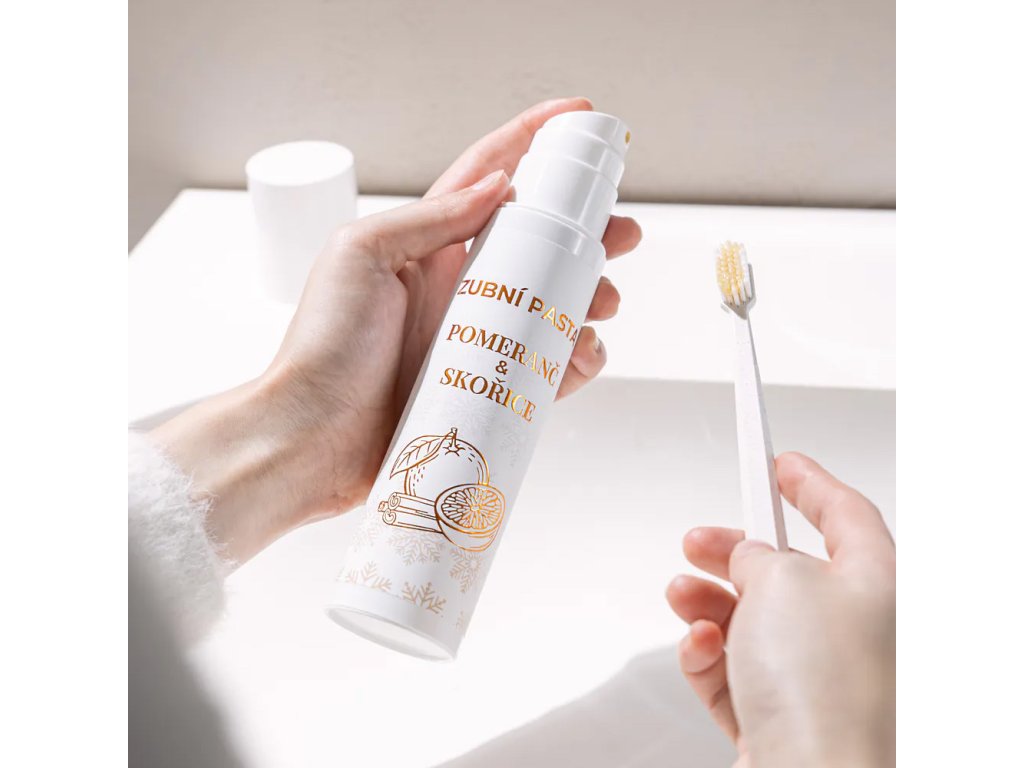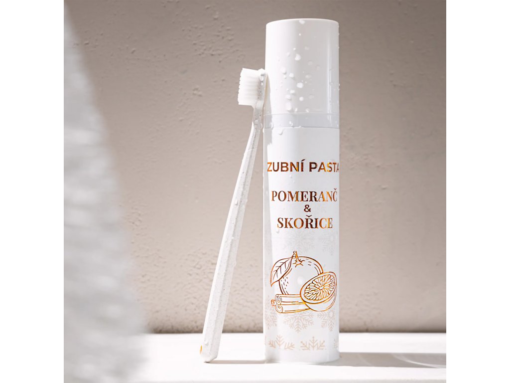 Zubní pasta s přichutí pomeranče a skořice má zcela přírodní složení. Obsahuje vysoký podíl bylinného extraktu ze 7 léčivých bylin pro šetrnou, ale důkladnou péči o zdraví vašich úst. Zvýšený obsah fluoridů (1450 ppm) se postará o posílení zubní skloviny. Ta bude pak lépe chráněna proti vzniku zubního kazu. Odměňte se unikátní zubní pastou, která potěší svou vůní i chutí a navíc bude pečovat o váš úsměv.