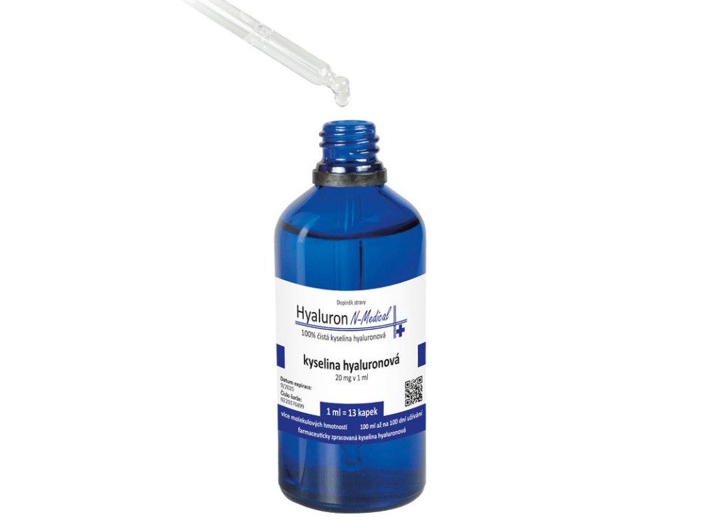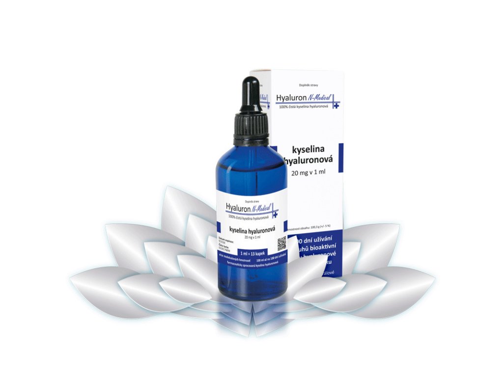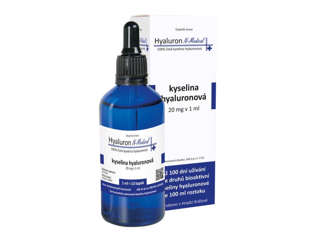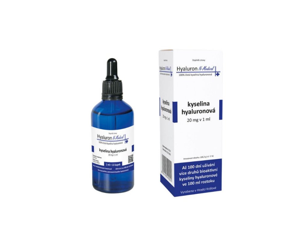 Hyaluron N-Medical (doplněk stravy) je první originální a unikátně vyvinutý přípravek ve formě roztoku pro vnitřní užívání. Hyaluron N-Medical je velmi kvalitní produkt, vyrobený ze 100 % čisté bioaktivní kyseliny hyaluronové původem ze Švýcarska. Kombinuje vysokomolekulární a nízkomolekulární kyselinu hyaluronovou, což zajišťuje maximální vstřebatelnost a účinek produktu.