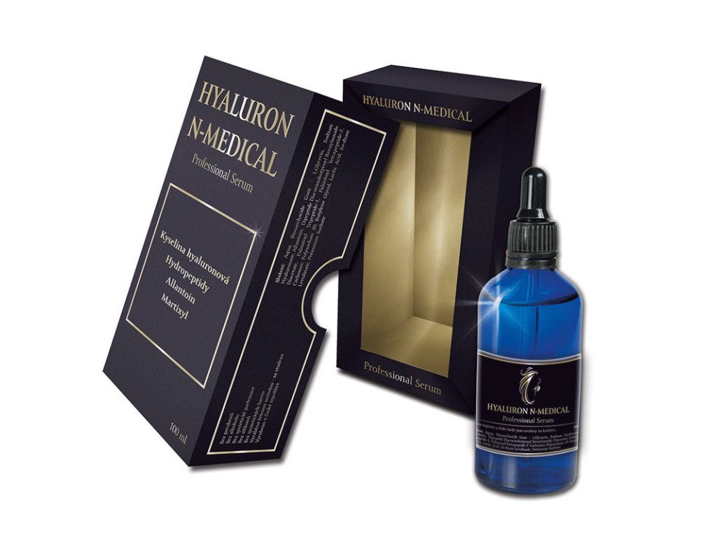 Hyaluron N-Medical sérum (100 ml) je vysoce hydratační sérum vytvořené zejména pro profesionály, ale i pro domácí použití. Hloubkově regeneruje a rehydratuje vysušenou pleť a pokožku. Funguje jako první pomoc pro vysušenou až velmi vysušenou (dehydratovanou) pleť a pokožku. Vzhledem ke svému složení, zejména díky hydropeptidům, zasahuje na několika tkáňových úrovních a mimo hloubkové regenerace pokožky zvládne i jemnou korekci vrásek a lifting obličeje.