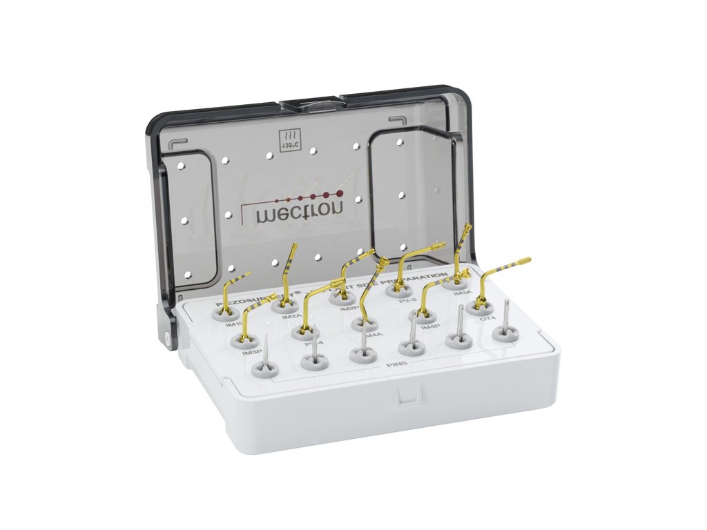 Rozšířená sada koncovek navržená pro precizní a bezpečnou přípravu implantologického lože pomocí ultrazvukové technologie PIEZOSURGERY®. Ideální pro chirurgy a implantology, kteří požadují maximální kontrolu a variabilitu při práci s kostí.