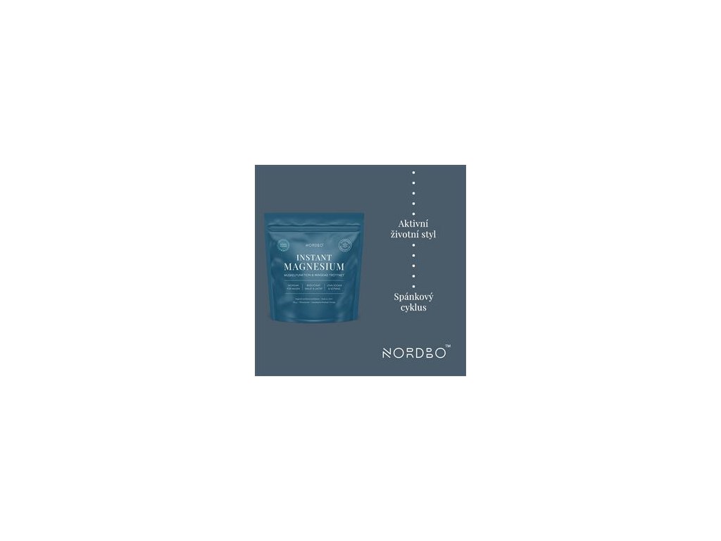 Nordbo Instant Magnesium obsahuje tři organické (chelátová vazba), biologicky vysoce dostupné formy hořčíku. Bysglicinát hořečnatý obsahuje hořčík vázaný na aminokyselinu glycin, jablečnan hořečnatý (malát) obsahuje hořčík vázaný na kyselinu jablečnou a laktát hořečnatý obsahuje hořčík s laktátem. Všechny tři nosiče hořčíku jsou organické a pro tělo velmi důležité: glycin pro celkovou regeneraci, malát pro tvorbu buněčné energie a laktát pro normální činnost srdce.