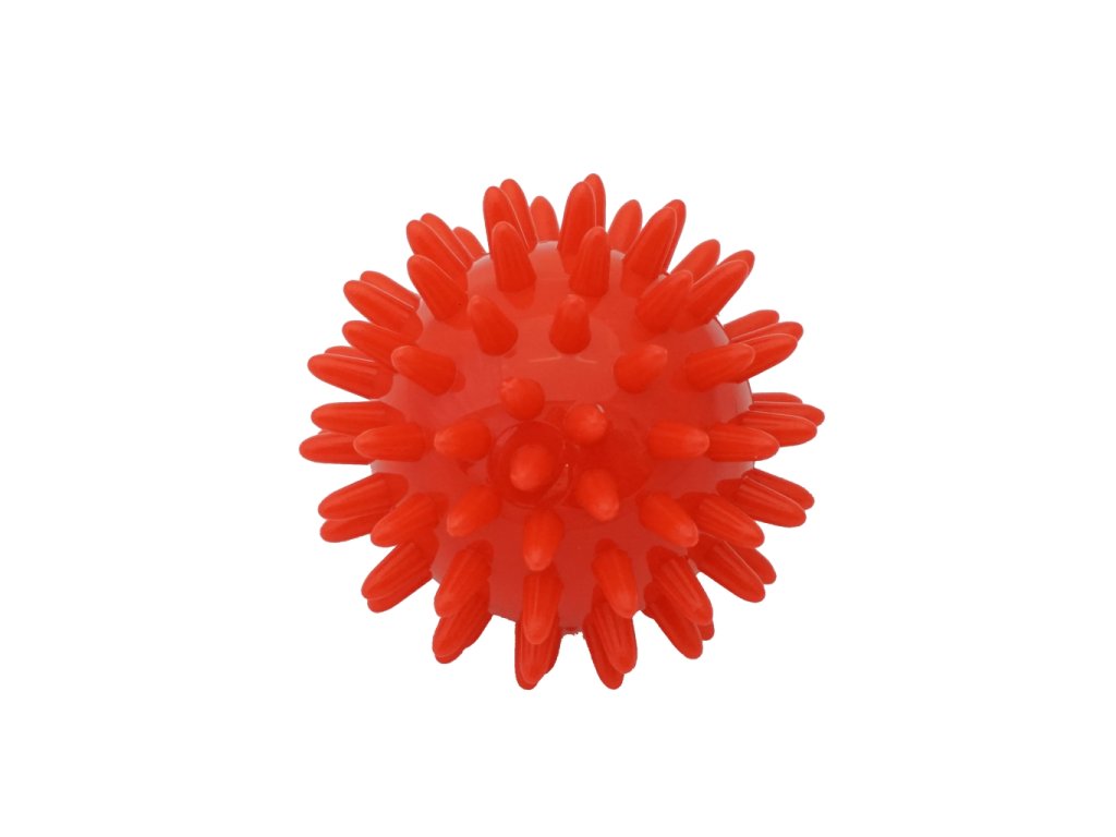 Velmi kvalitní masážní míček - ježek. Průměr 6cm, materiál PVC, barva červená.