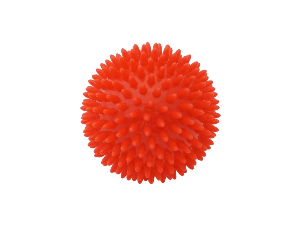 Velmi kvalitní masážní míček - ježek. Průměr 9cm, materiál PVC, barva červená.