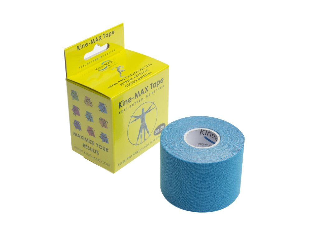 Kine-MAX Tape Super-Pro Cotton - Kinesiologický tejp - Modrý Kinesiologický tejp z bavlny pro podporu pohybu a komfort při nošení