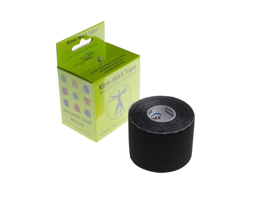 Kine-MAX Tape Super-Pro Rayon - Kinesiologický tejp - Černý Kinesiologický tejp pro podporu pohybu a komfort při nošení