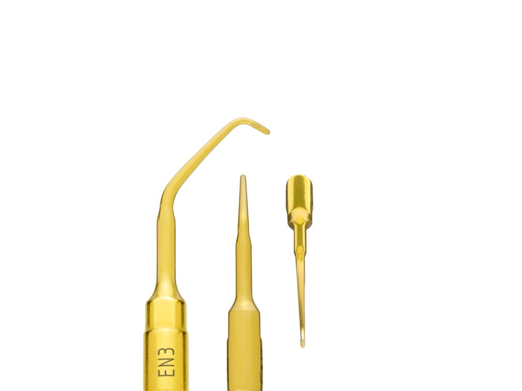 Koncovka EN3 je diamantem potažený piezoelektrický nástroj určený pro účinný apikální debridement v endodontické chirurgii. Díky kratší pracovní části (2,2 mm) je ideální pro zákroky vyžadující vyšší přesnost v omezeném prostoru apexu kořene.