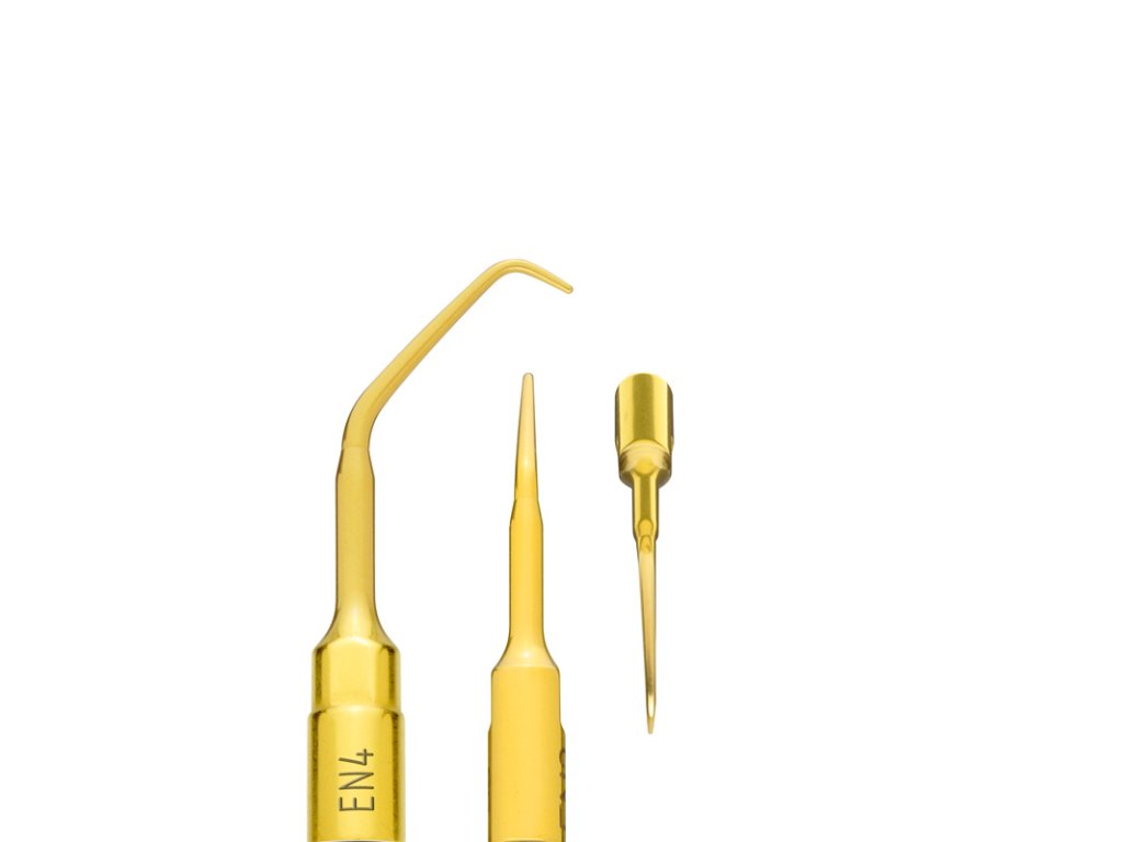 Koncovka EN4 je hladký piezoelektrický nástroj určený pro šetrný apikální debridement v endodontické chirurgii. Kratší pracovní délka 2,2 mm zajišťuje precizní práci v omezeném prostoru a umožňuje atraumatické čištění kanálků při zachování integrity okolních struktur.